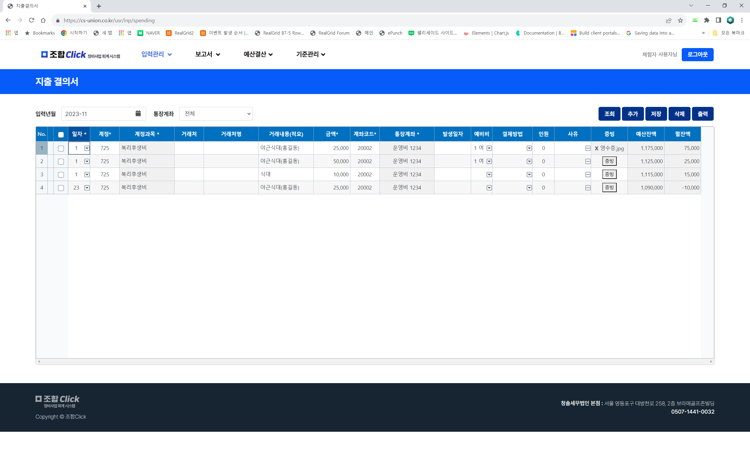 금전출납부 형태로 지출결의서와 수입결의서를 입력하고 관리하실 수 있습니다.
