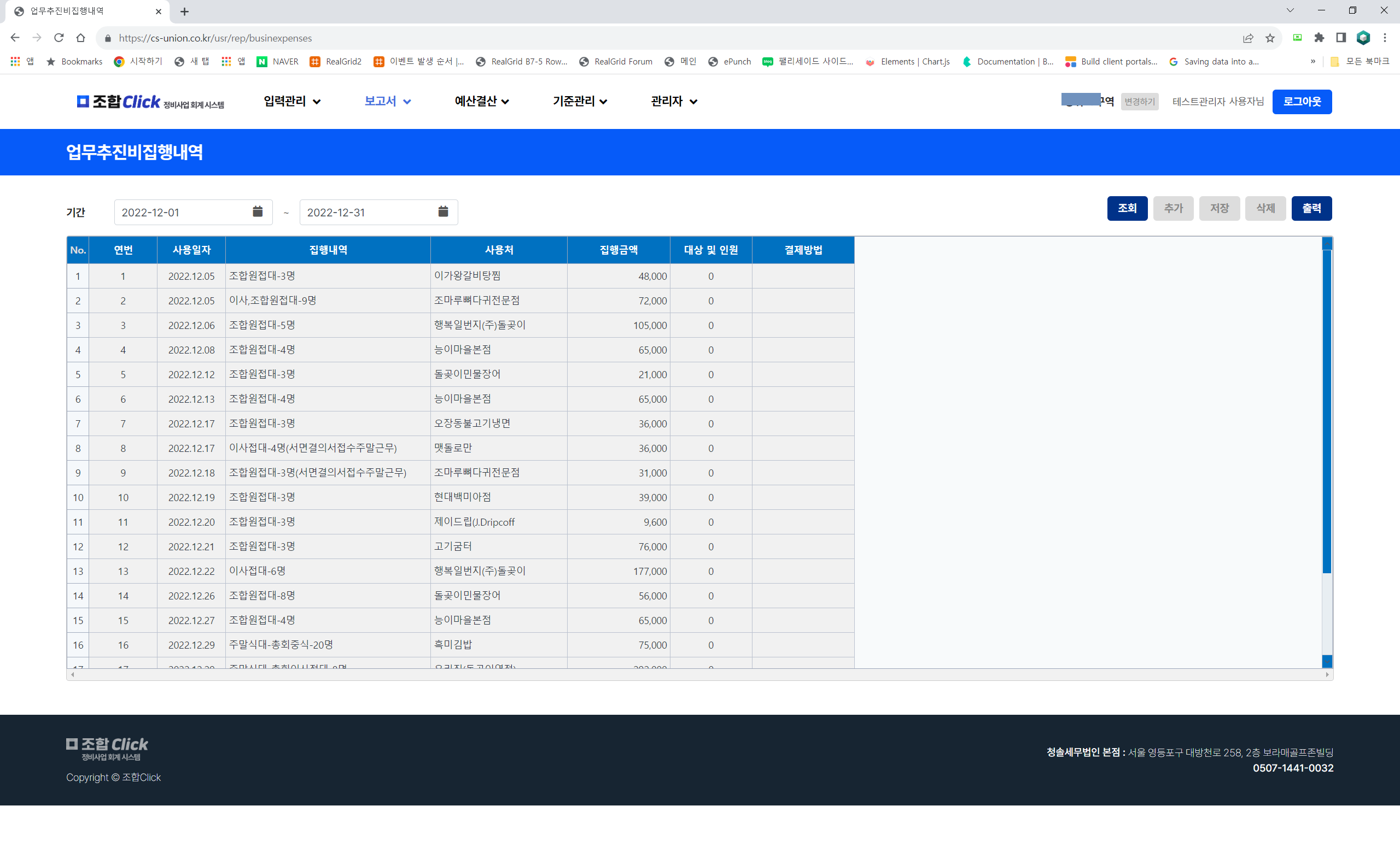 업무추진비도 별도로 기간을 지정하여 조회 및 출력이 가능합니다.