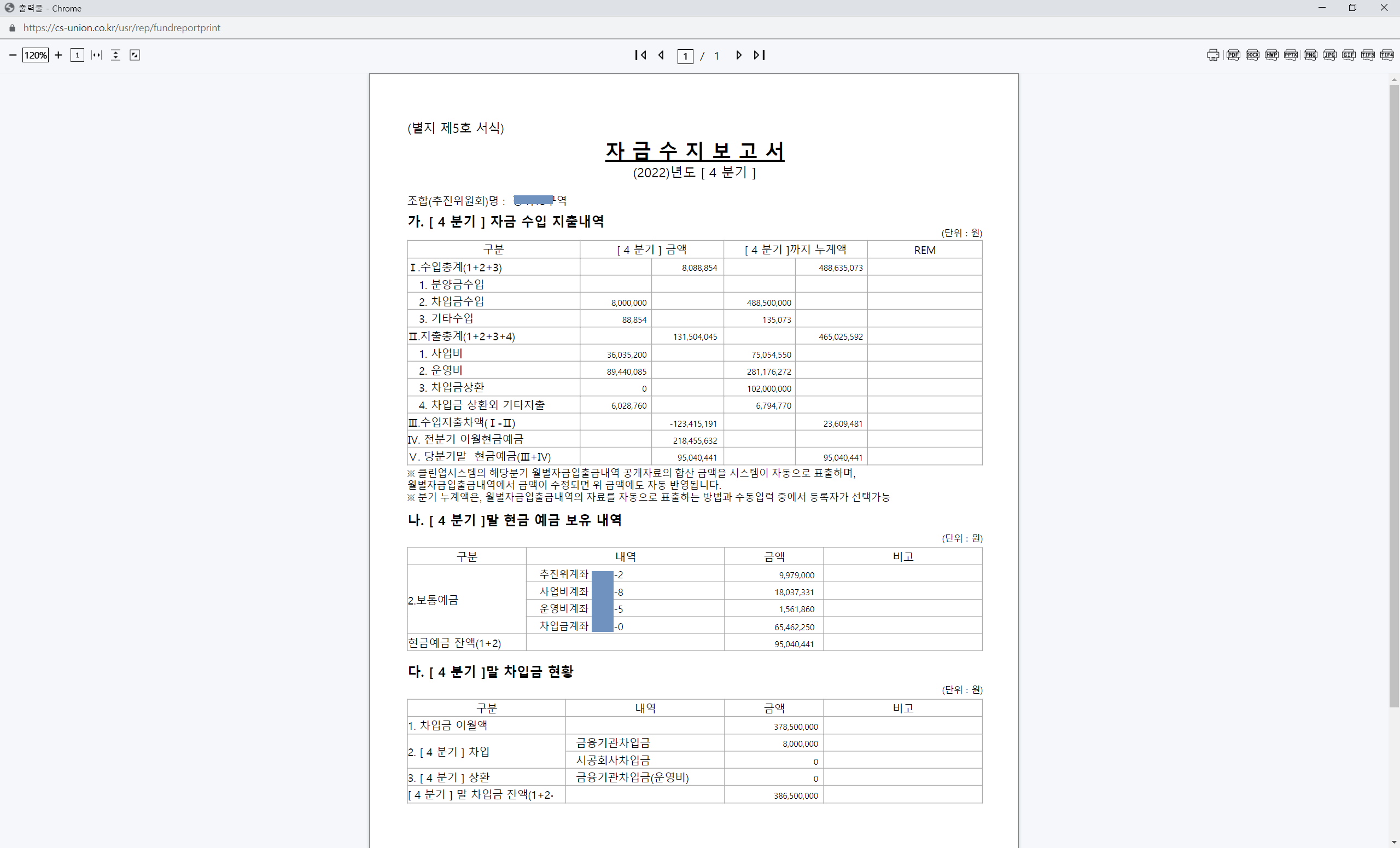 자금수지보고서의 결우 월별, 분기별로도 조회하실 수 있습니다.